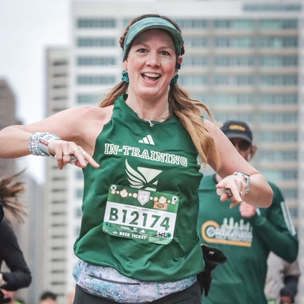 Mills has participated in In-Training for two years and now serves as a Run Lead, a volunteer leader mentoring other runners and celebrating their progress.